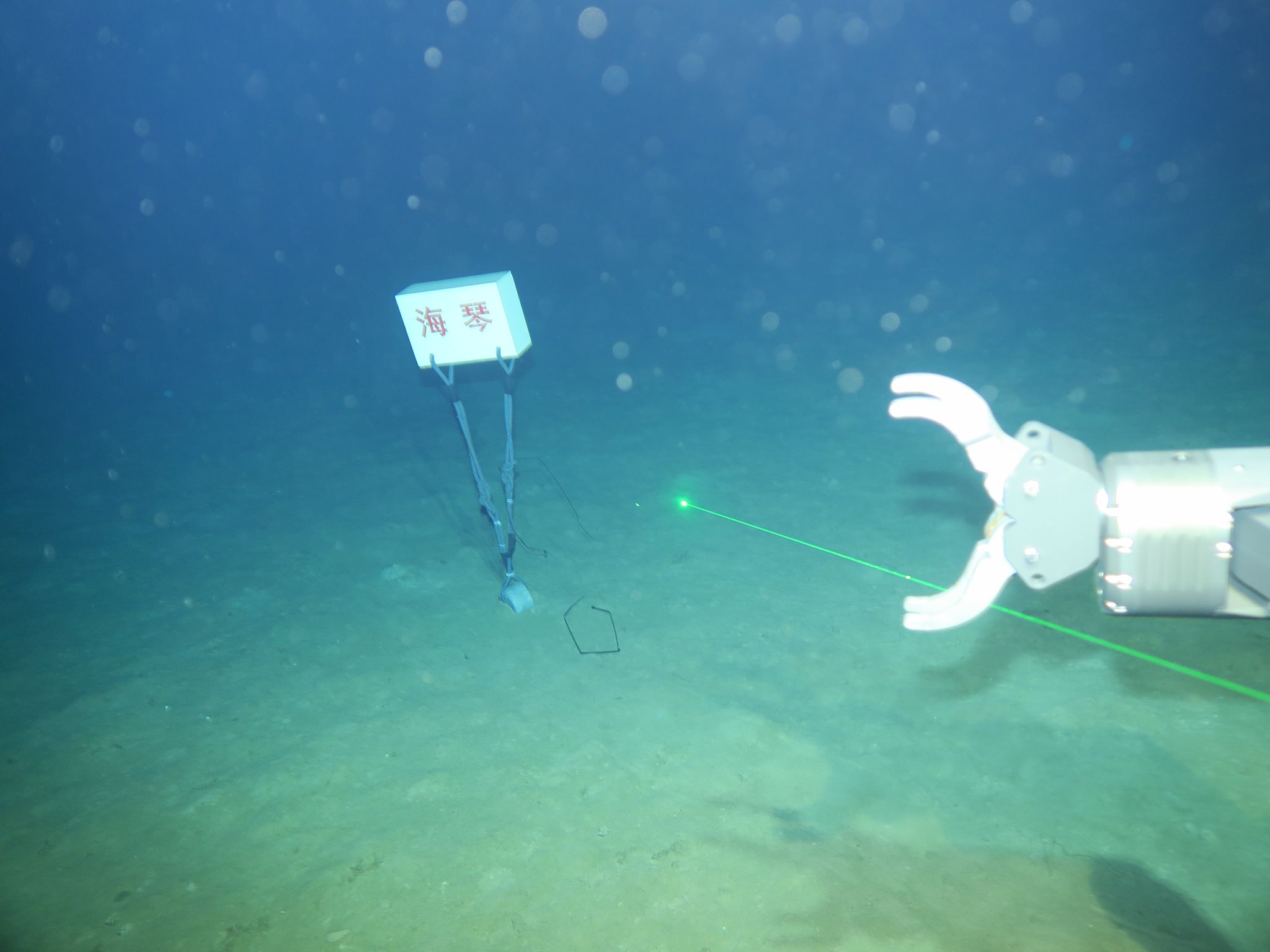 China's self-developed Haiqin, a 6,000-meter deep-sea remotely operated vehicle (ROV), places a marker on the seafloor at a depth of 4,140 meters, in the South China Sea, Aug. 23, 2025. (Sun Yat-sen University/Handout via Xinhua)