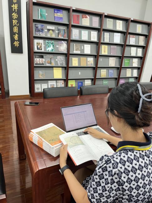 在圖書館,趙晨昕同學對開架雜志和平裝書籍進行整理,在此過程中,了解到故宮博物院圖書館現有紙質、電子圖書資源的整體情況和查詢方式,學習到開架圖書的借閱管理方法,參與到開架圖書排架整理、期刊歸庫、故宮文物月刊及故宮學術季刊電子目錄登記核對等工作。