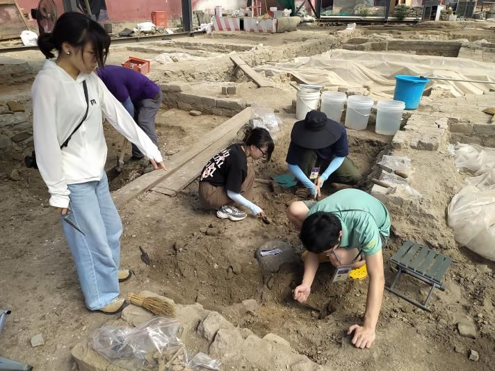 在考古部,寧逸風同學學習了大型宮殿建筑遺址的發掘技巧和相關工作規程,三維建模和全站儀等專業技術,還學習了庫房整理、畫圖、文物攝影......他說,最為重要的,是學到了很多慎思篤行的道理。