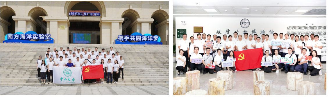 參觀合影(左圖在海琴四號(hào)樓前,右圖在地質(zhì)礦物博物館中)