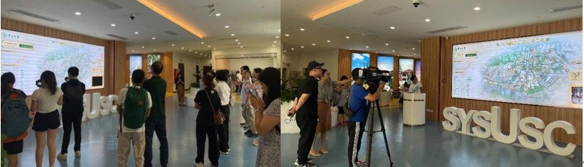 中大新聞網訊(通訊員蔡柏松、夏碧瑜)8月31日,中山大學2023級新生入學。在眾多心意滿滿的迎新活動和形式里,大學服務中心服務大廳的迎新數據大屏吸引了不少師生、家長以及媒體記者的注意。
