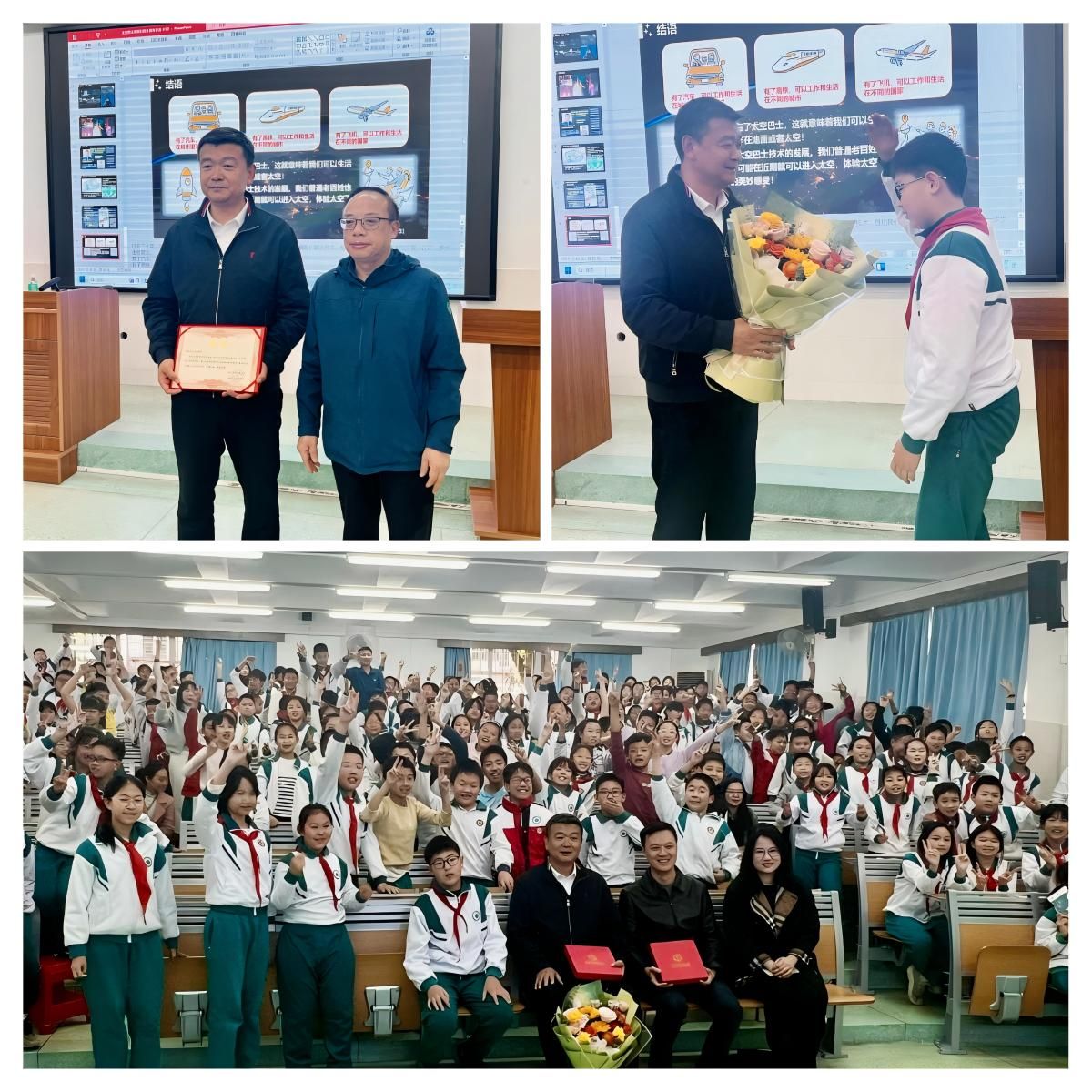 活動最后,中山大學附屬小學校長劉桂榮為陳洪波頒發科普證書表示感謝,優秀少先隊員代表送上鮮花,講座在一片歡聲笑語中圓滿落幕。