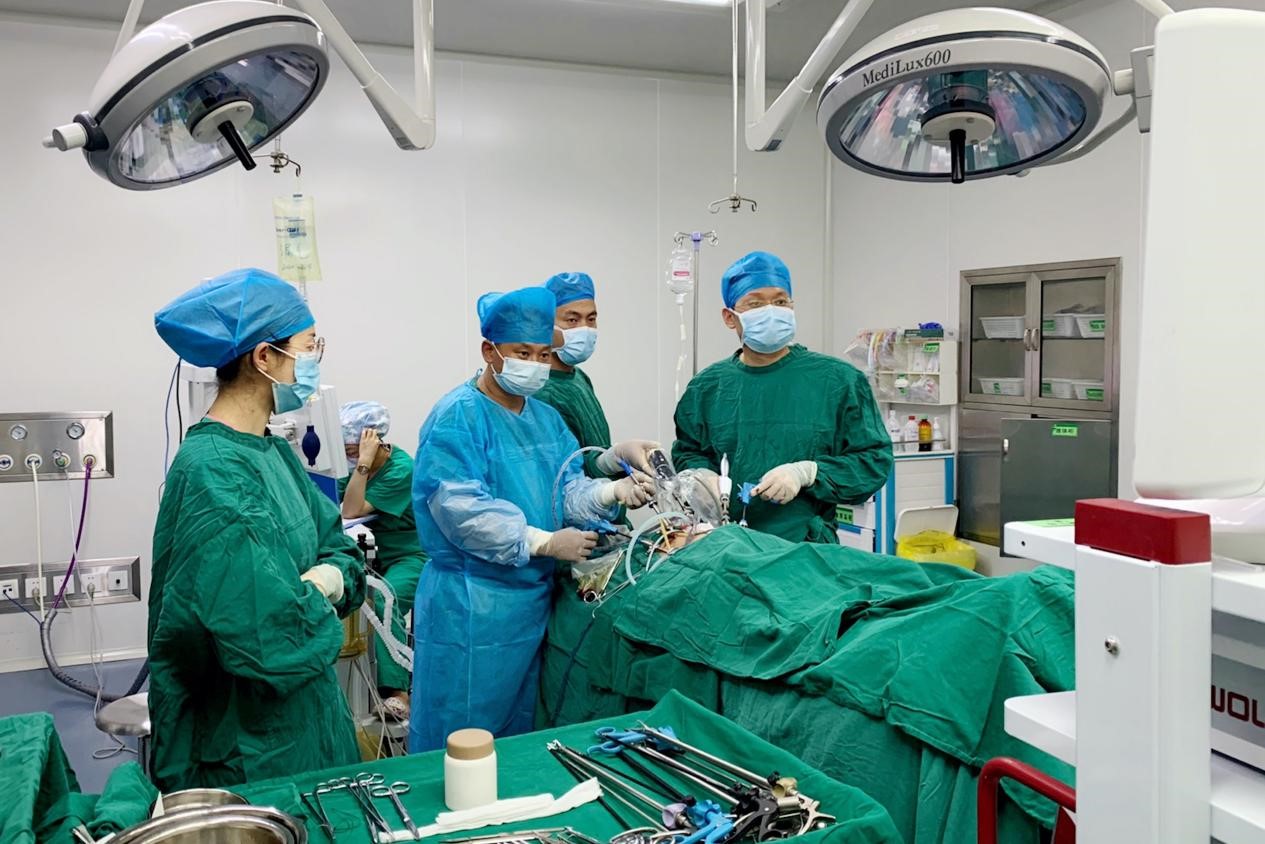 湛海倫帶領團隊主刀完成當地首例腹腔鏡腎部分切除術(來源:附屬第三醫(yī)院)