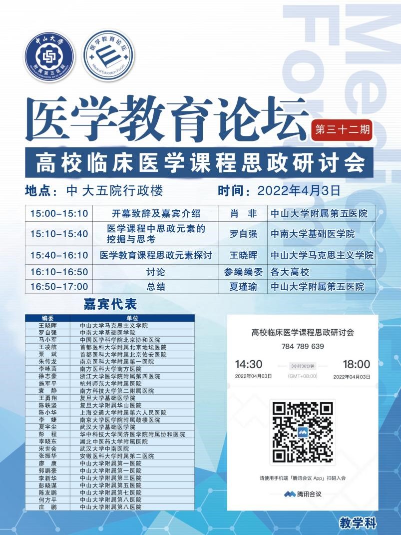 醫(yī)學(xué)教育論壇高校臨床醫(yī)學(xué)課程思政研討會(huì)宣傳海報(bào)(來(lái)源:附屬第五醫(yī)院)