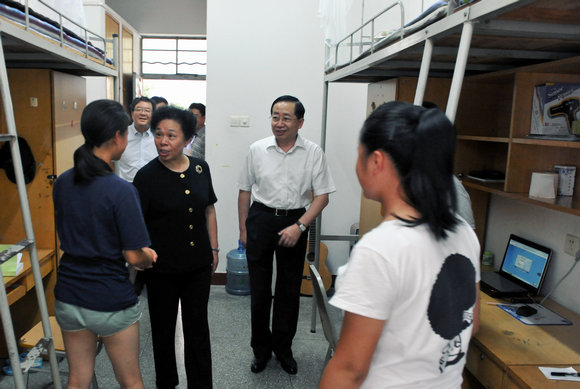 王立英一行考察南校區(qū)122棟學(xué)生宿舍,與學(xué)生親切交談