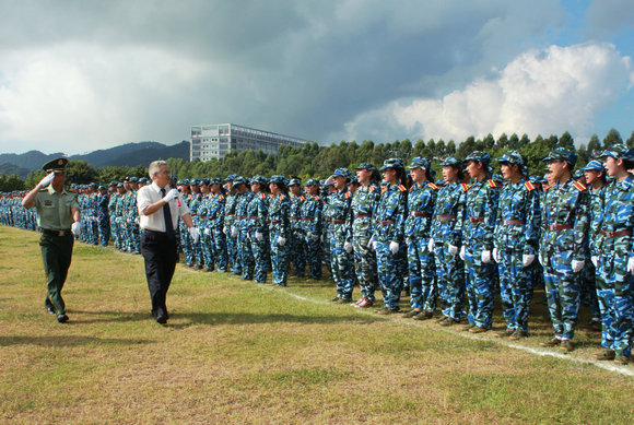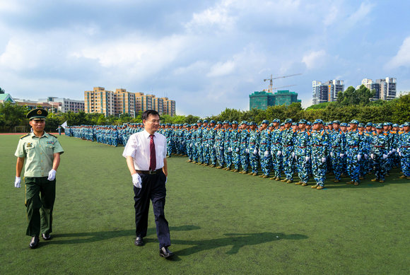 校長助理馬駿檢閱珠海校區2014級新生軍訓方陣