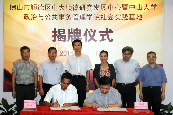 揭牌典禮上,政務學院與順德區政府簽訂了戰略合作框架協議,雙方將共同努力研究和探索與社會主義市場經濟相適應的行政管理體制和社會治理模式,解決順德綜合改革遇到的各種理論和實踐問題,促進順德經濟社會不斷發展,同時推動學院教學科研、人才培養等工作不斷提升,實現優勢互補和雙贏。