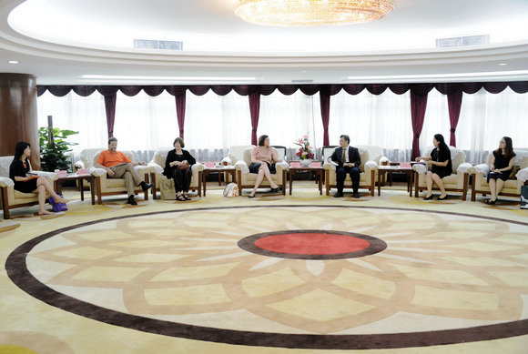 6月16日,美國俄克拉荷馬州立大學(Oklahoma State University,簡稱“OSU”)副校長Pam Fry博士率團一行4人來訪我校。代表團成員還包括該校研究生院副院長Jean Van Delinder、教育學院副院長John Romans等。我校副校長朱熹平在中山樓貴賓廳與來賓進行了親切會面,國際合作與交流處副處長徐瑤等陪同出席了會見。
