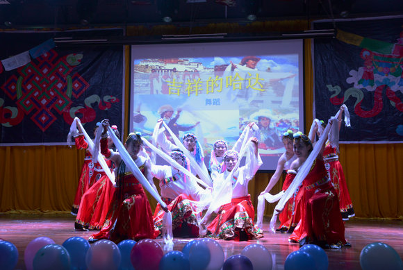 西藏民族學(xué)院學(xué)生表演舞蹈《吉祥的哈達》