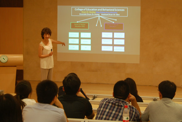為進(jìn)一步提升大學(xué)院黨委轄下外國語學(xué)院、國際漢語學(xué)院、翻譯學(xué)院、外語教學(xué)中心四個(gè)單位行政人員的綜合素質(zhì)、辦事效率、服務(wù)意識,配合各個(gè)單位國際化過程中的行政管理上更高的要求,更好地為四個(gè)單位的各項(xiàng)事業(yè)發(fā)展服務(wù),5月30日,外語與翻譯大學(xué)院黨委邀請美國北科羅拉多大學(xué)教育與行為科學(xué)學(xué)院院長、教師教育分院院長黃靜子教授為大學(xué)院黨委行政人員進(jìn)行培訓(xùn)。