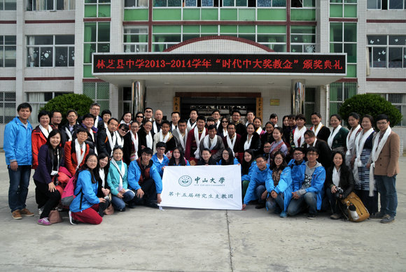 5月4日,中山大學第十五屆研究生支教團工作匯報暨“一幫一”獎助學金發放儀式在西藏林芝地區第一中學舉行,我校學生處處長漆小萍、校團委書記黃毅、數學與計算科學學院黨委書記李伯軍、林芝地區教育局副局長巴桑次仁、林芝團地委副書記次仁塔杰,以及我校慰問考察團全體老師,林芝地區第一中學、林芝地區第二高級中學、林芝地區職業技術學校、林芝縣中學等單位負責人參加了此次活動。