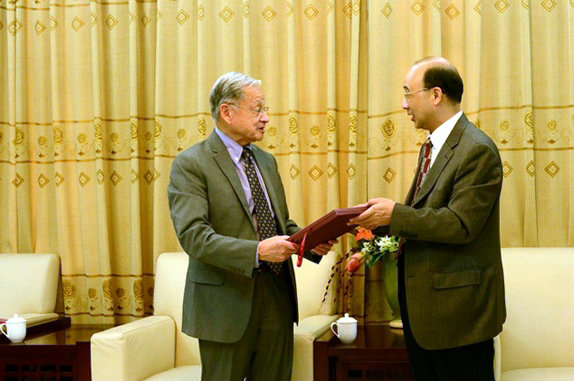 應我校公共衛生學院院長郝元濤的邀請,著名衛生經濟學家、哈佛大學公共衛生學院蕭慶倫教授于5月12-13日對我校進行了訪問。黎孟楓副校長于5月12日下午會見了蕭慶倫教授。