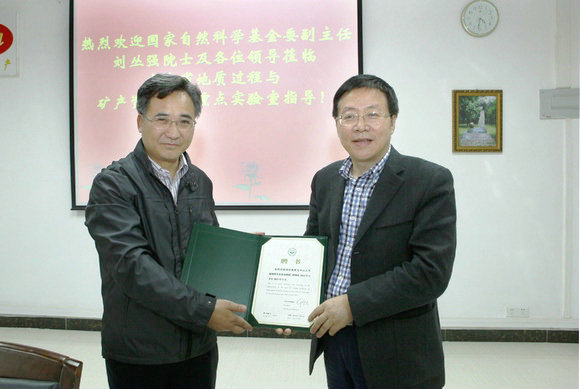 朱熹平副校長介紹了我校申報和承擔國家自然科學基金的情況,國際交流與合作的情況。他表示,非常歡迎來賓能為我校和地質學科的發展提出寶貴的建議。朱熹平副校長還為劉叢強副主任頒發了我校地球科學系兼職教授聘書。