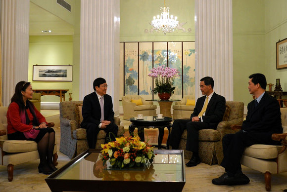 4月3日下午,我校校長許寧生前往香港行政長官官邸,拜會香港特區政府行政長官梁振英,校黨委副書記李萍、校長助理陳紹彬、教育發展與校友事務辦公室主任李漢榮等陪同會見。