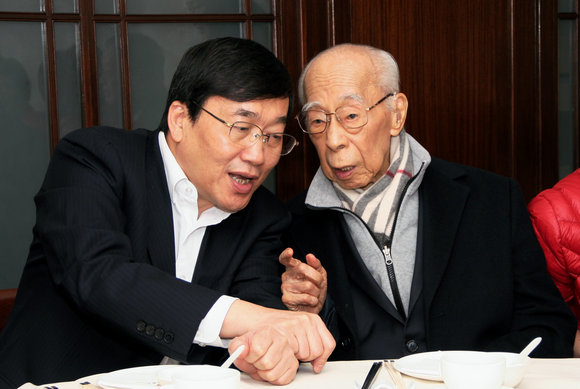 許寧生校長一行拜會了著名漢學大師饒宗頤教授、我校“芙蘭獎”評審委員會主席、香港大學教授、饒宗頤學術館館長李焯芬院士、“芙蘭獎”評委香港公開大學校長黃玉山教授、香港饒宗頤文化館館長陳萬雄博士、香港能仁書院副校長單周堯教授及陳運河、劉修婉校友伉儷。許寧生校長向饒宗頤教授介紹了學校近年來發展情況,特別是90周年校慶相關安排活動,饒宗頤教授甚感欣慰。許寧生校長同時也對諸位“芙蘭獎”評委及陳運河、劉修婉校友伉儷長期以來對中山大學教育事業的支持表示感謝。另外,許寧生校長還就學校相關合作事宜與李焯芬教授及太平洋人壽經營管理委員會主席潘燊昌博士進行了探討。