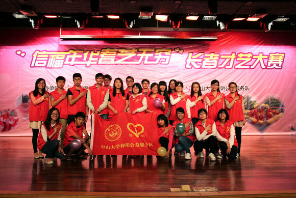 3月28日,由我校仲明公益服務隊、廣州義工聯及中信銀行廣州分行聯合主辦的“信福年華,耆藝無窮”長者才藝大賽在南校區舉行。廣州市老齡委、廣州市民政局、中信銀行廣州分行、廣州市義務工作聯合會、廣州逢源街等20個家庭綜合服務中心以及我校仲明公益服務隊成員參加了本次活動。