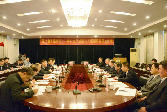 王蒙徽書記介紹了廈門市的歷史地位、城市特色、教育水平、經(jīng)濟(jì)發(fā)展情況,重點(diǎn)介紹了廈門特區(qū)在對臺(tái)工作中的獨(dú)特地位和作用。他說,廈門市委市政府提出了“兩個(gè)百年”的愿景:在建黨一百周年,把廈門市建設(shè)成為“美麗中國”的典范城市;在建國一百周年,把廈門市建設(shè)成為展現(xiàn)“中國夢”的樣板城市。他指出,廈門有實(shí)現(xiàn)這“兩個(gè)百年”愿景的條件,但在醫(yī)療水平、科技創(chuàng)新等方面還需要進(jìn)一步提升和加強(qiáng)。他肯定了我校在推動(dòng)產(chǎn)學(xué)研合作等方面所取得的成果,肯定了中山醫(yī)學(xué)院在醫(yī)療衛(wèi)生方面所做出的重要貢獻(xiàn)。他希望,此次框架協(xié)議的簽訂將作為一個(gè)良好的開端,為雙方在醫(yī)學(xué)和其它方面的進(jìn)一步合作打好基礎(chǔ),推動(dòng)兩地高校和城市的發(fā)展。