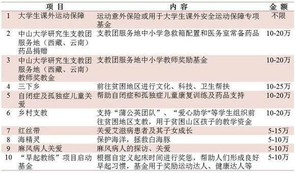 本次中山大學“募跑”活動將面向全社會征集定向捐贈方,捐助形式不限。目前,通過“募跑”,我校的大學生課外運動安全保障項目、西藏貧困地區教師獎勵金項目、西藏貧困地區白內障手術項目已陸續得到中英人壽保險公司、時代地產公益基金會、中山大學中山眼科中心等多方公益支持。中山大學的大學生們還有很多的公益夢想項目,我們希望貧困的孩子不再受到病痛折磨,希望鄉村的教師能得到更多的獎勵,希望貧困地區得到更多的科技、衛生、文化支持,希望大學生運動意外傷害得到保障等,我們提出以下的一些公益夢想項目,希望通過我們募跑來獲得社會各界的支持: