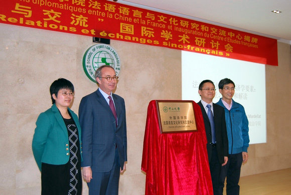 與會嘉賓為中山大學外國語學院法國語言與文化研究和交流中心揭牌
