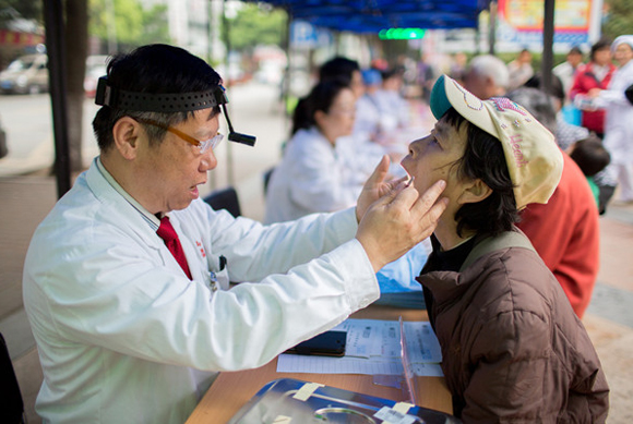 “中山大學附屬第六醫院博士志愿者服務團”成員正為群眾義診