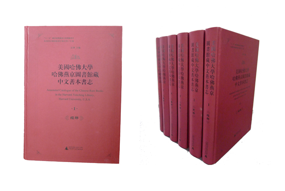 《美國(guó)哈佛大學(xué)哈佛燕京圖書(shū)館藏中文善本書(shū)志》由沈津先生主編,自1992年起,歷時(shí)18年編撰而成,全書(shū)共6冊(cè),400萬(wàn)字,囊括了美國(guó)哈佛燕京圖書(shū)館藏除方志之外所有中文古籍善本,總計(jì)3097種,于2011年4月由廣西師范大學(xué)出版社出版。該書(shū)詳細(xì)記錄和闡釋了每一種珍稀古籍善本的版本內(nèi)容與價(jià)值,包括書(shū)名、卷數(shù)、行款、板框、題名、序跋、作者簡(jiǎn)歷、各卷內(nèi)容、撰著緣由、序跋和版本鑒定依據(jù),以及諱字、刻工、寫(xiě)工、繪工、印工、出版者、其他館藏、收藏鈐記等信息。該書(shū)還專(zhuān)門(mén)對(duì)國(guó)內(nèi)未收藏的稀見(jiàn)書(shū)籍善本作了詳細(xì)的著錄與揭示,開(kāi)創(chuàng)了被學(xué)界稱(chēng)為“哈佛模式”的古籍善本書(shū)志編撰體例,為海內(nèi)外學(xué)人了解哈佛燕京圖書(shū)館的中文古籍收藏與價(jià)值提供了全面的參考資料,為中文古籍善本書(shū)志的編纂模式、體例和方法等實(shí)踐與理論發(fā)展提供了重要的借鑒,是一部在版本學(xué)、文獻(xiàn)學(xué)領(lǐng)域有重要學(xué)術(shù)價(jià)值的工具書(shū)和參考書(shū)。