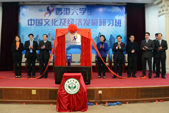 12月23日下午,由新鴻基地產(chǎn)郭氏基金會、香港青年聯(lián)會、中山大學青年聯(lián)合會主辦,香港大學、香港青聯(lián)學生交流網(wǎng)絡協(xié)辦的香港大學生中國文化及經(jīng)濟發(fā)展研習班(第一期)開班儀式在南校區(qū)懷士堂舉行。廣東省副省長招玉芳、省政協(xié)副主席唐豪、校黨委書記鄭德濤等出席開班儀式。50名研習班學員、港籍學生代表共130多人參加了開班儀式。儀式由校黨委副書記李萍主持。