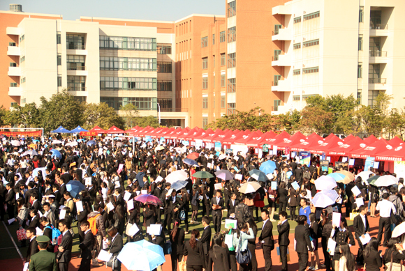 考慮到近幾年校園招聘會學生入場規模的逐年上升,今年的招聘會特地改在我校東校區西田徑場舉行,有效緩解了學生場內過于擁擠的狀況。兩場招聘會雖然入場人數眾多,但各項工作井然有序,受到了畢業生和用人單位的好評。
