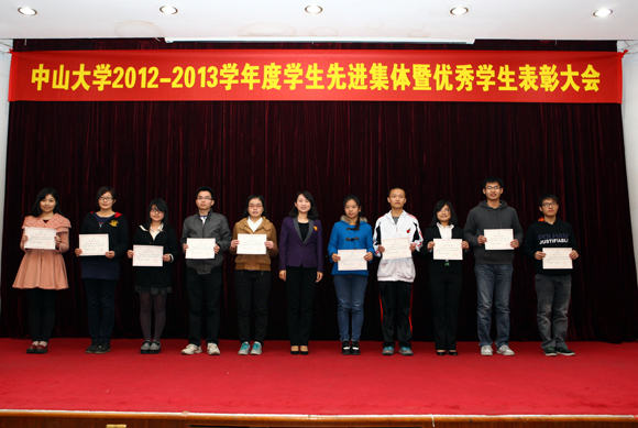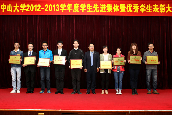11月29日下午,中山大學2012-2013學年度學生先進集體暨優秀學生表彰大會在南校區懷士堂舉行。校黨委副書記、副校長朱孔軍出席大會,各捐贈單位嘉賓代表,校內各相關職能部門負責人,各院系副書記、輔導員和獲獎學生逾200人與會。