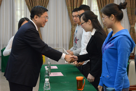國(guó)亞萍副書記首先代表學(xué)校對(duì)光華教育基金會(huì)表示誠(chéng)摯的感謝,并向光華教育獎(jiǎng)學(xué)金的獲獎(jiǎng)同學(xué)表示祝賀。她說,光華教育獎(jiǎng)學(xué)金自1990年在我校設(shè)立以來已有整整二十三年歷史,基金會(huì)鼓勵(lì)在校學(xué)生奮發(fā)向?qū)W,成為國(guó)家的有用人才,這與我校“促進(jìn)人心向?qū)W,不斷追求卓越”的理念不謀而合。她希望同學(xué)們不辜負(fù)光華教育獎(jiǎng)學(xué)金捐助者對(duì)大家的殷切期望,為中華民族新的崛起做出貢獻(xiàn)。