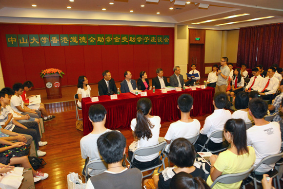 6月23日,中山大學香港道德會來訪我校,并在南校區與助學金受助學子座談。來訪期間,香港道德會還受邀參加了我校2013屆畢業典禮暨學位授予儀式,并在儀式開始前與許寧生校長進行了會談。香港道德會會長何騰、副會長徐煜全、扶貧助學總監駱馳、司理霍穎斌,我校黨委副書記李萍、教育發展基金會秘書長李漢榮、教育發展與校友事務辦公室副主任孔曉慧、學生處副處長鐘一彪及我校香港道德會助學金獲助學子共260余人參加了本次活動。