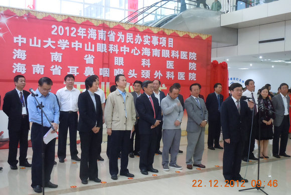 2012年7月5日,海南省人民政府與中山大學簽訂了醫(yī)療衛(wèi)生合作協(xié)議。根據(jù)雙方協(xié)議,海南省人民政府委托中山大學中山眼科中心運營管理新組建的海南省眼科醫(yī)院,并以“中山大學中山眼科中心海南眼科醫(yī)院”為醫(yī)院的第一名稱,以四年內(nèi)建成三級甲等眼科醫(yī)院為發(fā)展目標,不斷提高海南省眼科醫(yī)療和科研水平,為海南人民提供優(yōu)質(zhì)、專業(yè)的眼科醫(yī)療服務;委托我校附屬第一醫(yī)院技術扶持海南省耳鼻咽喉頭頸外科醫(yī)院,附屬一院將提供技術和人才支持,派駐技術骨干開展醫(yī)療技術、護理技術、科研和教學全方位的扶持工作,促進海南耳鼻咽喉頭頸外科醫(yī)療和科研、教學水平的提升。
