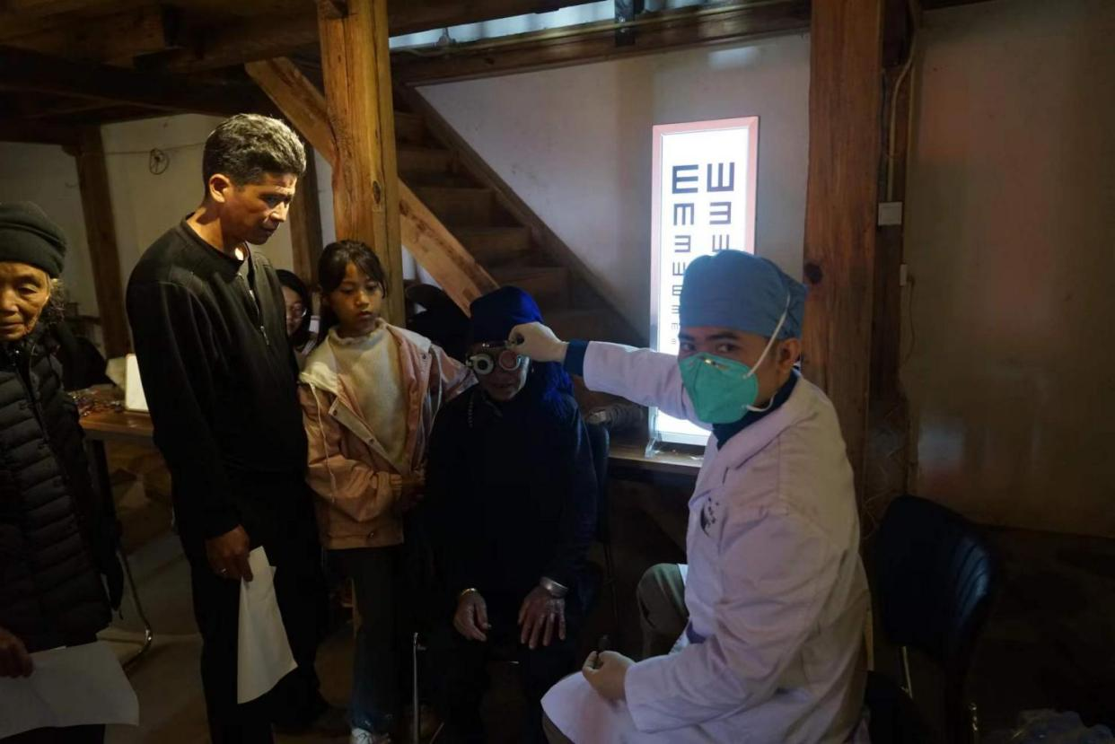 廖翔醫生為當地村民檢查眼睛(來源:中山眼科中心)