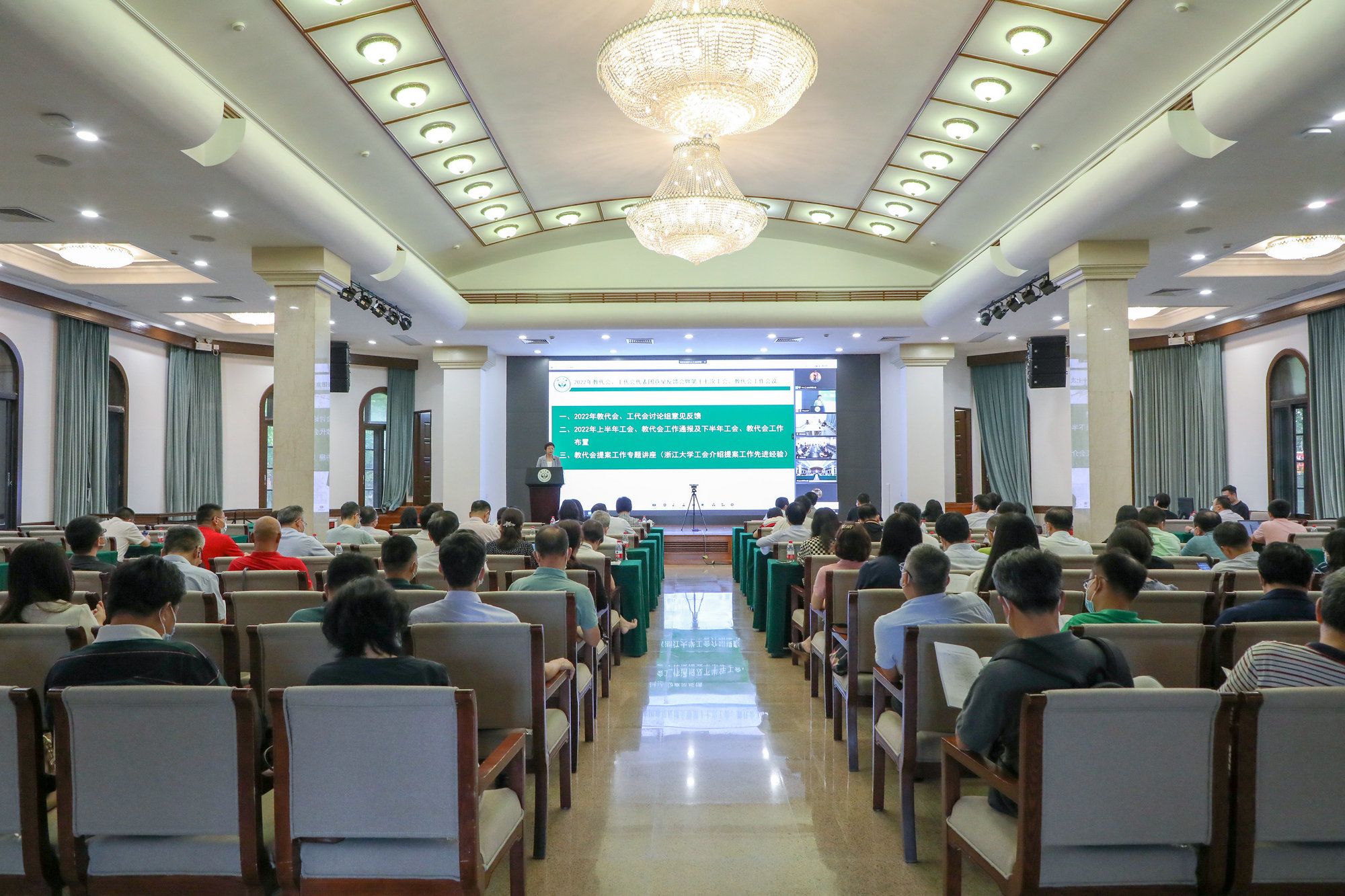 中大新聞網(wǎng)廣州6月15日電(通訊員諸華)6月10日下午,我校2022年教代會(huì)、工代會(huì)討論組意見反饋會(huì)暨第十七次工會(huì)、教代會(huì)工作會(huì)議在廣州校區(qū)南校園懷士堂召開,珠海校區(qū)、深圳校區(qū)設(shè)視頻會(huì)議分會(huì)場。各教代會(huì)代表團(tuán)團(tuán)長,二級工會(huì)主席,附屬醫(yī)院工會(huì)主席、常務(wù)副主席、專職副主席,產(chǎn)業(yè)集團(tuán)工會(huì)主席,校工會(huì)委員和教代會(huì)、工會(huì)各專門工作委員會(huì)主任以及尚未成立分工會(huì)的二級單位黨組織負(fù)責(zé)人等近150人參加了本次會(huì)議。會(huì)議由校黨委副書記、工會(huì)主席國亞萍主持。