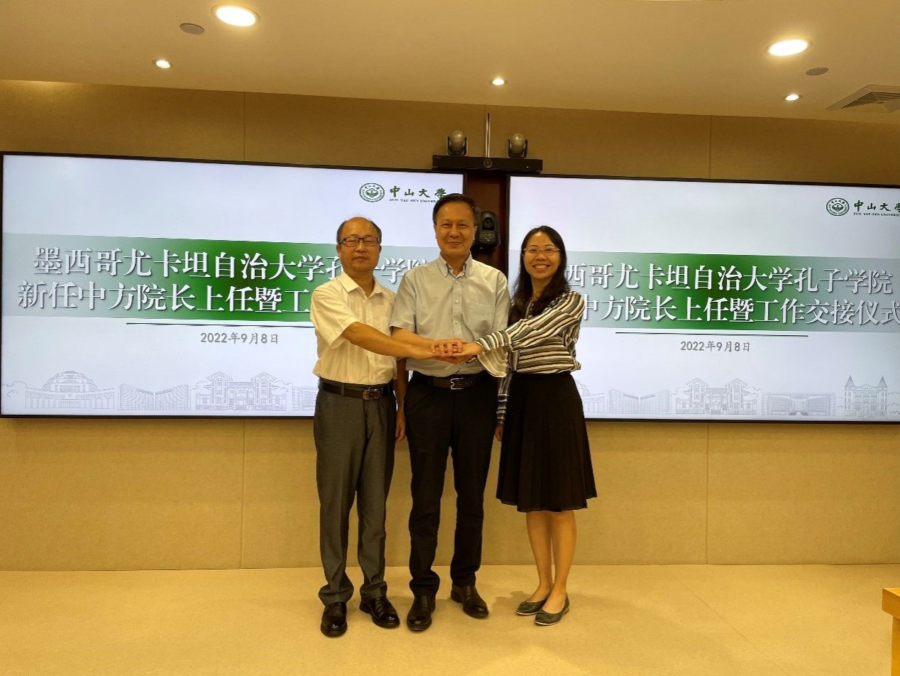 中大新聞網廣州9月13日電(通訊員馮洋)9月8日上午,我校舉行墨西哥尤卡坦自治大學孔子學院新任中方院長上任暨工作交接儀式。肖海鵬常務副校長、尤卡坦自治大學孔子學院新、老院長,學校黨委組織部、國際合作與交流處(孔子學院辦公室)、人力資源管理處、國際翻譯學院、粵港澳發展研究院等職能部門和院系負責人出席活動。會議由國際合作與交流處處長、孔子學院辦公室主任盧宇彤主持。