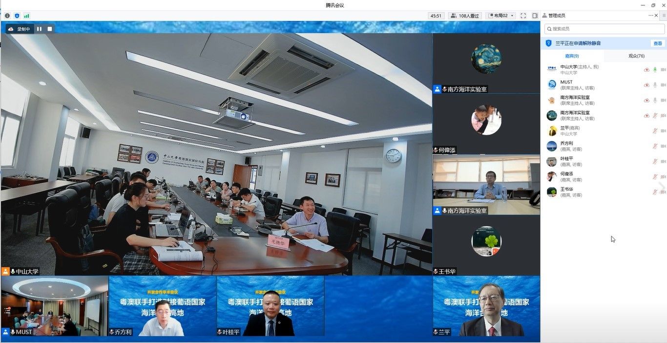 中大新聞網廣州9月19日電(通訊員陳多多)9月15日上午,由中山大學、南方海洋科學與工程廣東省實驗室(珠海)、澳門科技大學聯合主辦的“粵澳聯手打造對接葡語國家海洋合作高地”線上學術研討會在中山大學廣州校區南校園文科樓分會場召開。會議由中山大學區域開放與合作研究院、中山大學港澳珠江三角洲研究中心、澳門科技大學澳門海洋發展研究中心、南方海洋實驗室自主科研項目、國家自然科學基金-澳門科學技術發展基金聯合基金、國家社會科學基金重大項目承辦,科技部中國21世紀議程管理中心和澳門城市大學葡語國家研究院支持。中山大學副校長蘭平、南方海洋科學與工程廣東省實驗室(珠海)副主任王輝、澳門科技大學副校長龐川分別代表主辦方致辭。