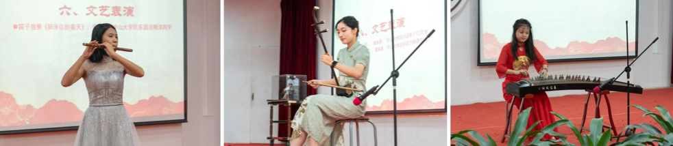 在慶典上,中國語言文學系師生代表、龍婉蕓先生好友獻上壽禮。中山大學民樂團同學為慶典帶來了精彩的樂器演奏節目。