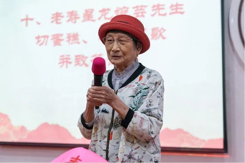 子女代表黃小蕓老師在發言時感謝母親的養育之恩,向中山大學中國語言文學系為母親舉辦百歲壽誕慶典表示感激,同時感謝龍先生的老同事、老朋友、老學生為母親獻上真摯而美好的祝福。