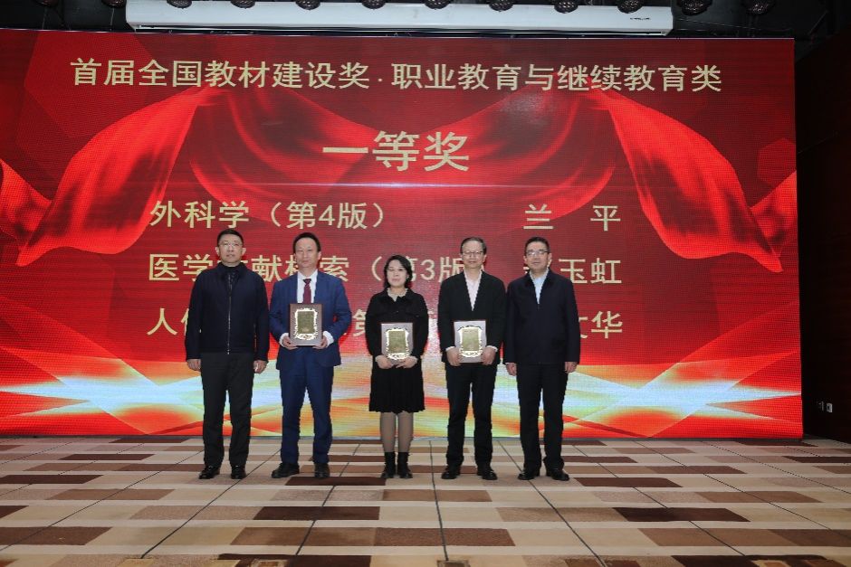 在2021年舉行的教育部全國首屆優秀教材建設獎評選中,人民衛生出版社出版教材斬獲豐碩,獲得特等獎一項,一等獎三項。我校蘭平副校長主編的《外科學》第4版,以其優秀的品質、改革性的編撰形勢及良好的社會反響,榮獲一等獎。本次會議舉行了獲獎證書頒發儀式。