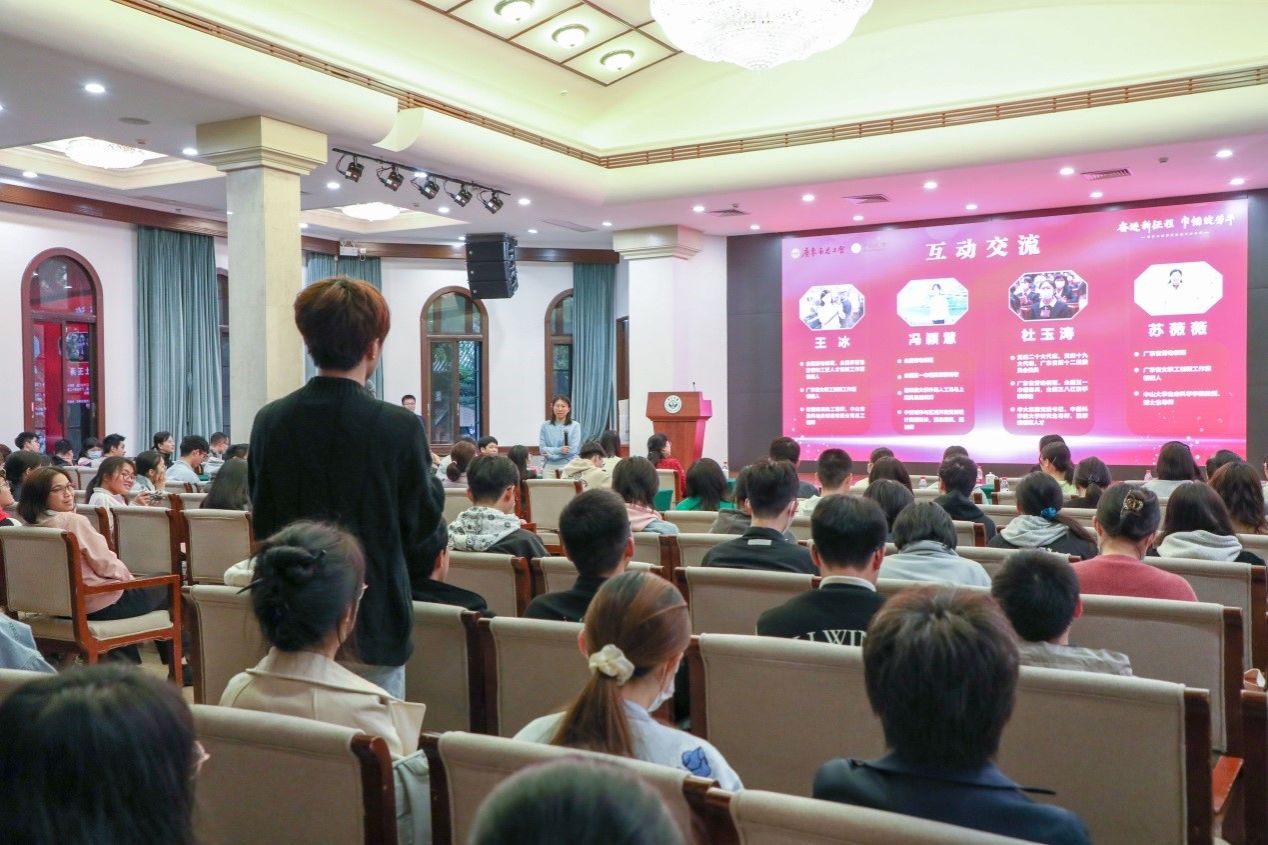全國勞動模范,全國示范性勞模和工匠人才創新工作室、廣東省女職工創新工作室領銜人,中山市盈科軸承制造有限公司總工程師王冰分享了自己執著追求、精益求精,立志讓小小軸承成為中國驕傲的動人故事。全國勞動模范、全國五一巾幗獎章獲得者,中交城市與區域開發規劃設計院副院長,副總建筑師、規劃師馮穎慧講述了她作為港珠澳大橋外海人工島島上建筑總建筑師及技術負責人,與團隊一起舍小家為大家,攻堅克難、拼搏奮斗,圓滿繪就世紀工程藍圖的難忘經歷。黨的二十大代表,廣東省勞動模范,深圳華大生命科學研究院黨委書記杜玉濤結合自身經歷分享了我國生物技術領域尤其是基因檢測技術的發展,鼓勵青年師生要不負使命、逐夢未來。全國五一巾幗標兵崗帶頭人,廣東省勞動模范,廣東省女職工創新工作室領銜人,中山大學生命科學學院教授、博士生導師蘇薇薇分享了自己教書育人,將個人科研目標與國家社會需要相結合,潛心鉆研、快樂創新,用二十余年探索化橘紅標準建設,以科技成果助力脫貧攻堅和鄉村振興的體會。