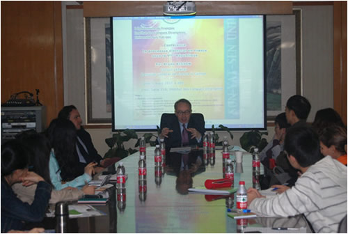 The Consul General of French Consulate General in Guangzhou Mr. Bruno Bisson gave a lecture in the School of Foreign Languages, SYSU, on the topic of ‘the Electoral Procedure of the French Fifth Republic’ on March 5. Teachers and students of French Department attended this lecture.