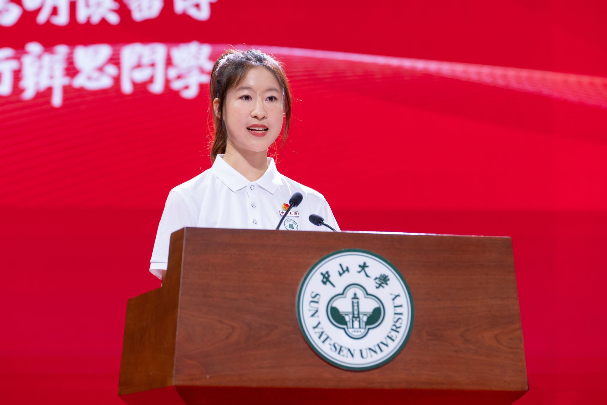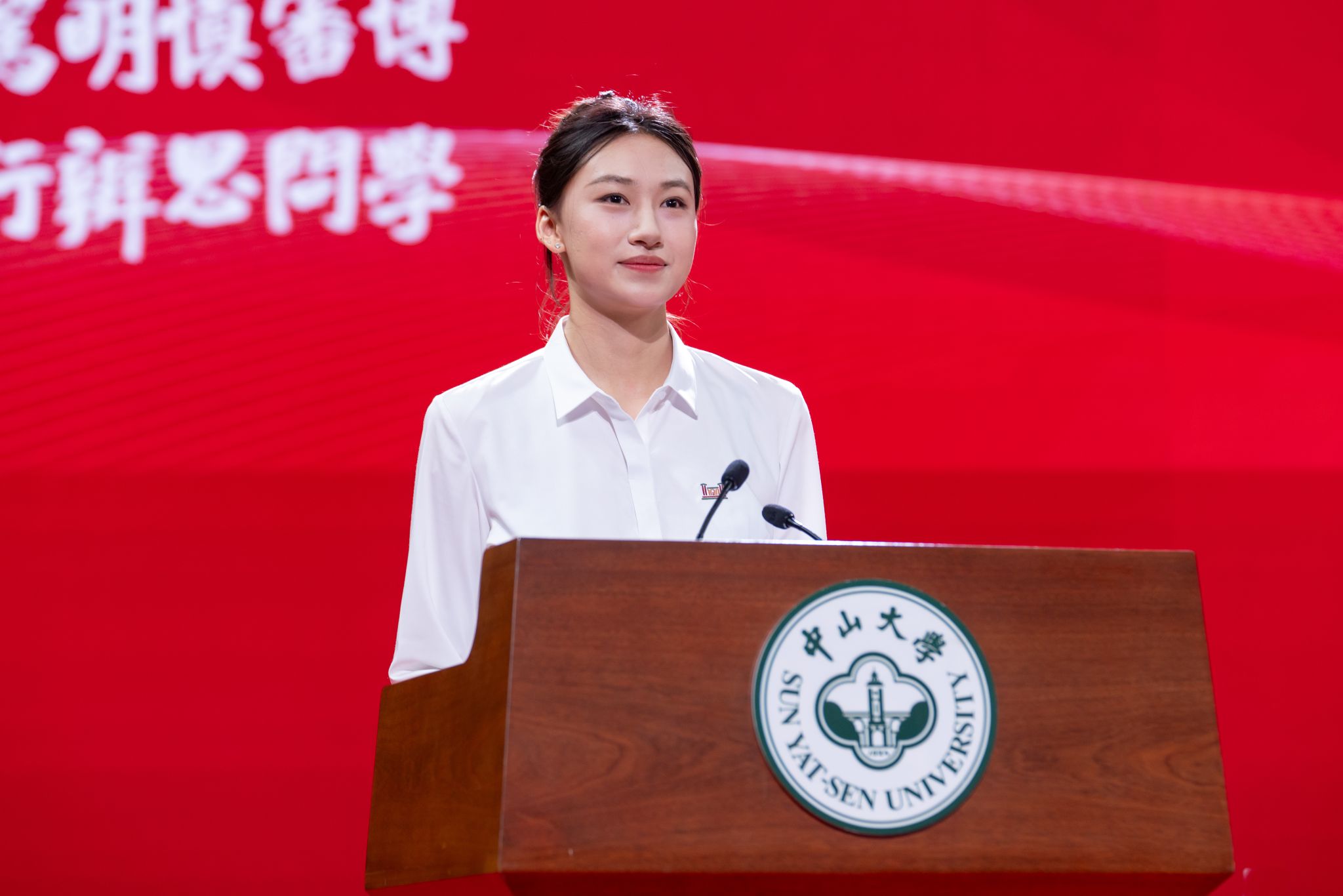 Zehui Qiu, a first-year undergraduate student from Zhongshan School of Medicine, shared her perspective on what it means to be a new-generation SYSU student, defining this spirit through a mindset of integrity, a dedication to truth-seeking, and a commitment to action. She also talked about her aspiration to combine medical knowledge with sports injury research in her future studies.