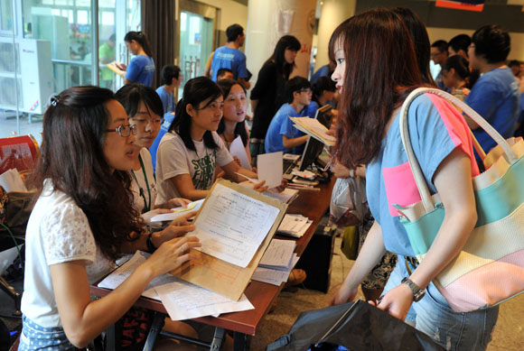 On August 10, the work of welcoming new students started. As early as in May, the University set up a leadership group headed by Deputy Secretary and Vice President Zhu Kongjun to make arrangements for the work. With proper planning, the registration went on smoothly in spite of Typhoon Utor.